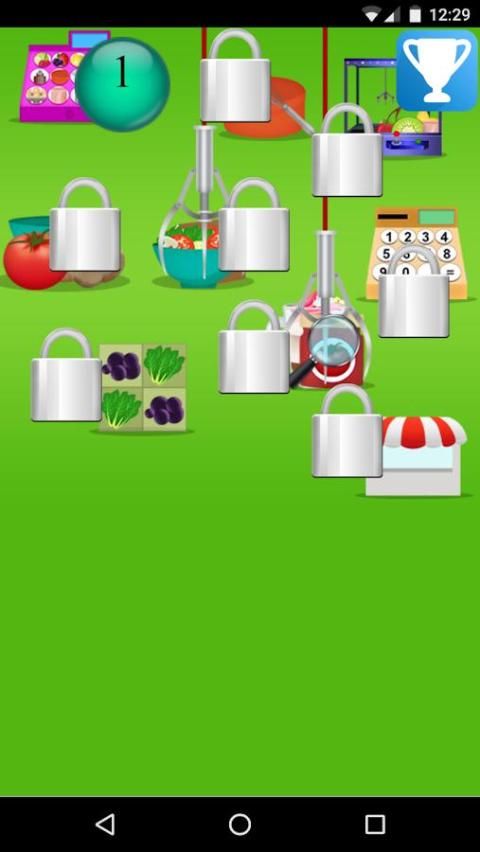levels with different difficulty: take out all the items. hidden items. simple addition math with money payment.