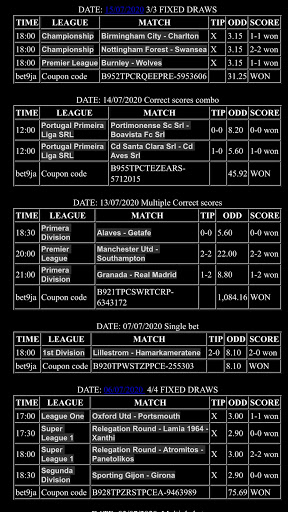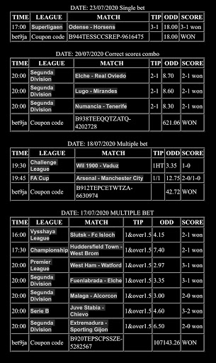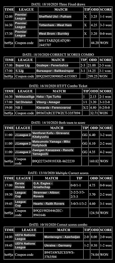 DAILY UPDATE CORRECT SCORES DRAWS HT/FT COMBO TICKET VIP TICKET