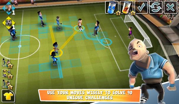 Defenders inspired by infamous players, past and present, stand in the way of you living the dream. With a limited number of moves, cleverly pass, run or shoot your way through the defenders to score the perfect goal.
