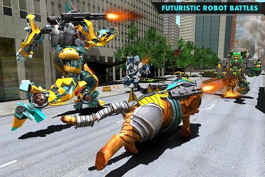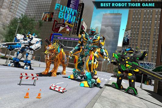 Let the futuristic battle of robots begins in Real Robot Tiger Game – Tiger Robot Transforming to destroy the animal robots & build your robo tiger into an ultimate machine that can face other monster robot to make this part of best tiger games. In order to master the city of tiger robot games; the transforming tiger will destroy all robot animals & start a wild tiger fight with transforming robots unseen in other wild panther or robot lion games. Merging the thrilling robotic war scenarios of robot transform from panther robot war games & the future war strategy of real robot games, this robot action simulator will let you become a tiger robot who can save other animal robots and humans in action unseen in other robot transformation games. Let the fight begin in the best robot games & have fun with the transforming sharks & the deadly shooting adventures of action robots. Smooth robot action controls & interesting animations in this black tiger robot simulator will make you forget other robot animal games. Enjoy fighting with tiger claw, scare transforming robots with your tiger roar & attack monster robots unlike other transforming robot games.