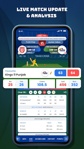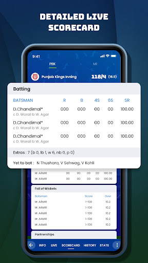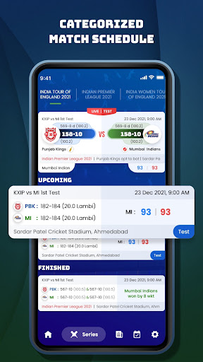 Get detailed cricket score board 📊 with for both team's where you get details of a batsman, bowling, fall of wicket, partnership with auto-refresh. Also catch finished match details with a fast cricket live line.