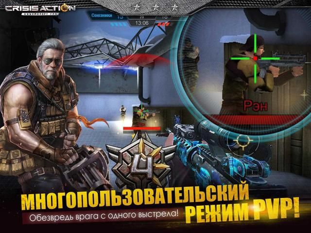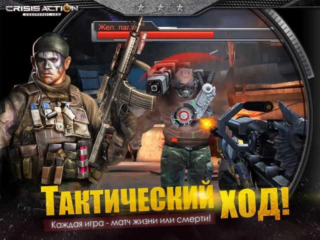 Crisis Action - первый мобильный киберспортивный шутер от первого лица в России! Игра отличается высококачественной 3D графикой и позволяет сражаться в командных боях в режиме онлайн!