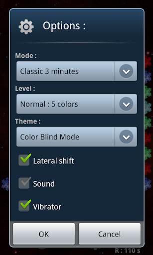 Customize the difficulty of the game from 3 to 7 colors , levels baby, easy, normal, hard, expert.