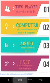 Its a simple game, where you get 3 consecutive chances to select either X or O But the most important intention is to win the game within the given time limit.