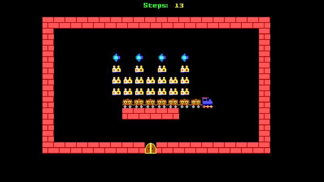 Train Snake is a classic retro type of game Snake. Where you are trying to collect all the objects on the screen while trying to avoid your own wagons, walls and successfully reach the finish which is an open gate. The gate opens when all the objects
