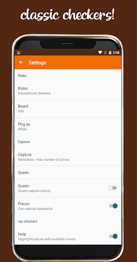 checkers game international 2 player game has two fun playing against demanding opponents: a laptop or another person in two-player offline mode.