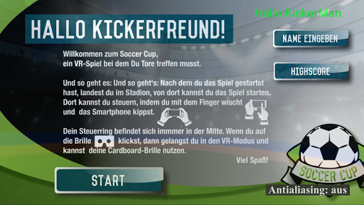 Willkommen Kickerfreund, bei Kick-It-VR einem 3D VR Fußball Spiel!