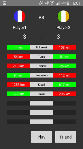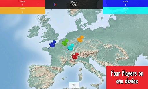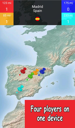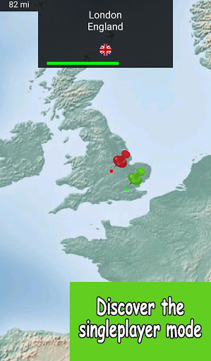 Single-player-mode: In the single-player-mode you can adjust the difficulty, the time limit and the length of the game individually. So you can increase the difficulty step by step. Try to be as near as possible to the given place to get most scores so you can beat your personal highscore.