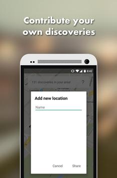 This app proclaims the principle "From users, for users". Following this principle, you can add your own discoveries and see all contributions from other users on the map.
