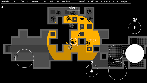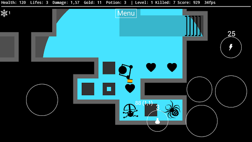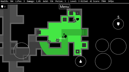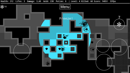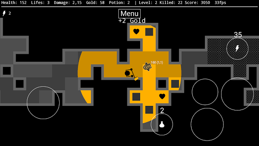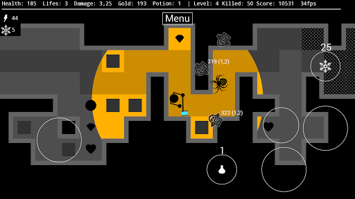 Against the darkness offers various opportunities showing off your strategic skills in calculating health, strength and power ups. Each dungeon chamber is arbitrarily generated, offering unexpected combinations of level structures, possible survival solutions and waiting monsters.