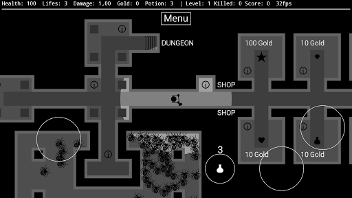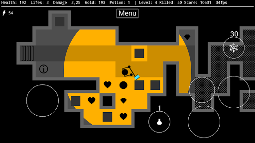 Collect gold to enhance your chance of survival. Change it into updates, health potions and power-ups.