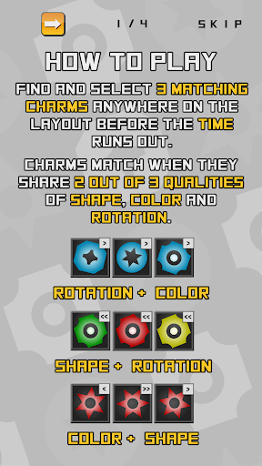Find a matching combination of 3 so-called charms and advance to higher rounds. But beware! The farther you come, the less time you have to find a combination.