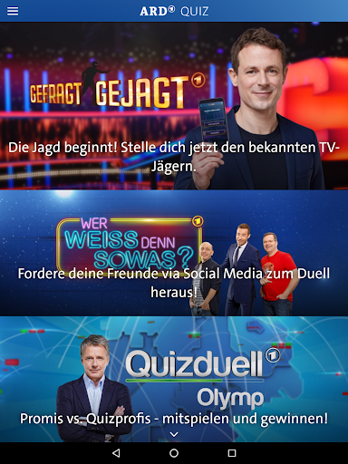 Nell'app ufficiale di ARD Quiz troverai una vasta gamma di giocatori nel popolare quiz e mostreranno programmi di ARD.
