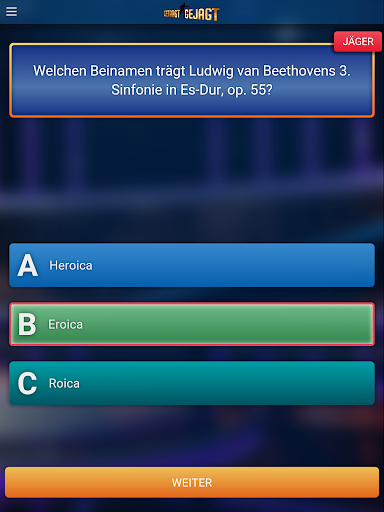 La stagione di caccia è aperta!D'ora in poi puoi competere nell'app Ard Quiz con i "cacciatori" del famoso programma serale Ard "CHEDUNTED".In tre round entusiasmanti guadagni punti e cerchi di difenderli nel quiz di conoscenza contro un "cacciatore".I giocatori particolarmente di successo hanno l'opportunità di richiedere il programma tramite l'app ARD Quiz come candidato.Con un po 'di fortuna, potresti presto affrontare il "cacciatore" in studio.