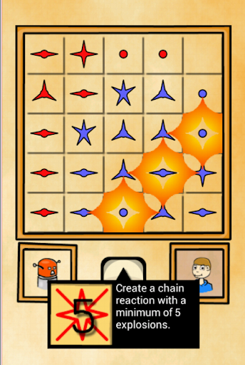 The game is also similar to Reversi, because you are able to conquer enemy fields. This is a vital concept, because strong enemy fields remain strong and are upgraded by your exploding star next to it. While you only conquer the fields directly next to an exploding star, this explosion can create a chain reaction, where many stars next to each other explode, too.