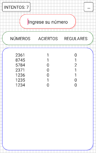 1-. Proponer: Ingresa un número que crees que sea el que el juego ha pensado, éste te responderá qué tan cerca estuviste mediante los indicadores de "aciertos" y "regulares".