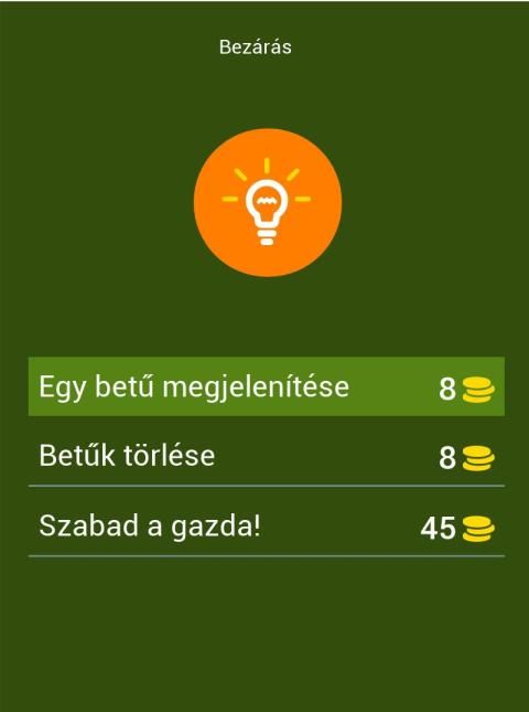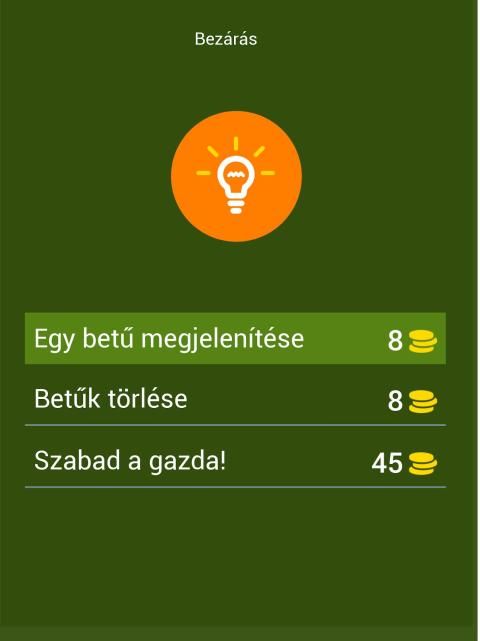 * Lehetőségek segítségért kérni a barátaitól, ha nem találja ki a helyes választ