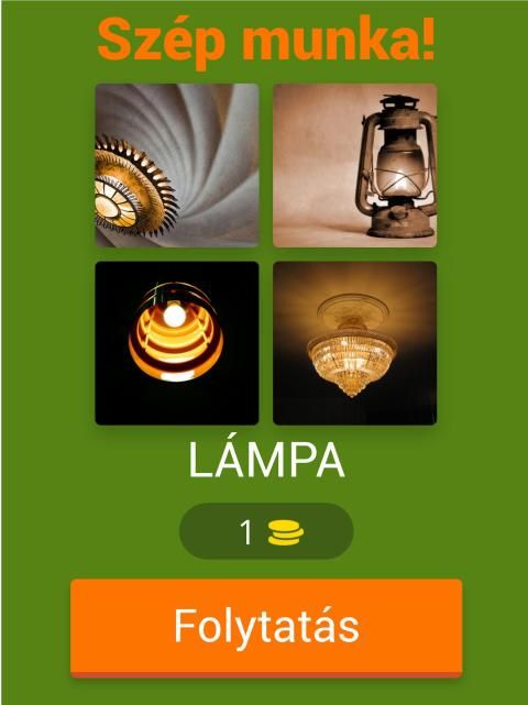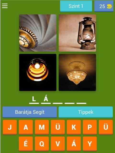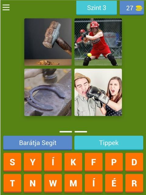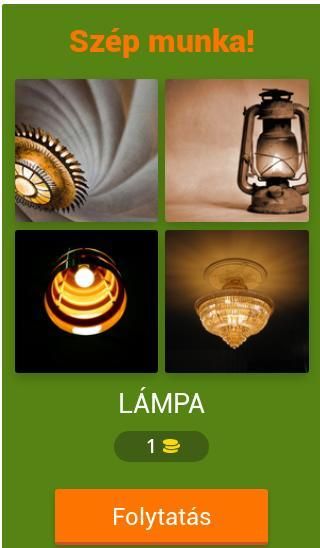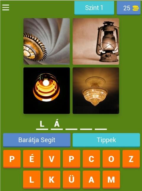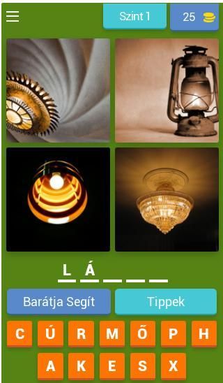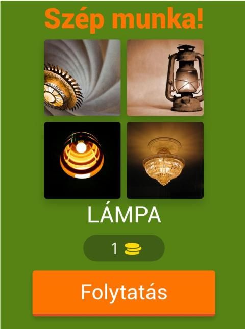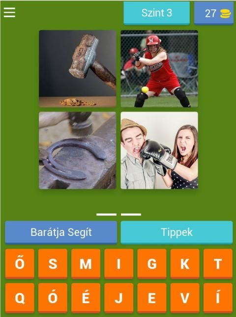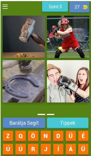 Minden szinten 4 kép jelenik meg, melyből ki kell találni a közös szót.