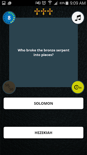 There are 2 different modes in which you can play the Free Bible Trivia Quiz, the quick mode and the survival mode.