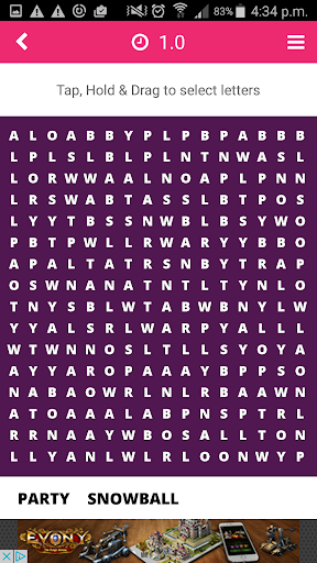 There are 4 levels of difficulty to choose from for the beginner through to the more experienced Word Search players.