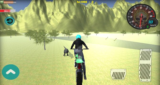 Huge dino world game environment will feel you realistic bike riding. you should drive as a bike racer ride your bike with incredible speeds, dodging the offroad dino around you and flying off the top of big mountains.