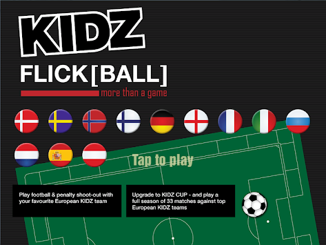 With KIDZ FLICK[BALL] you can select your favorite EUROPEAN team and play your own nations cup.