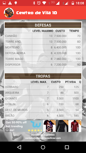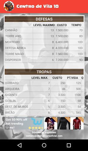 Com ele você vai saber qual o nível máximo de tropas e construções que sua vila consegue atingir.