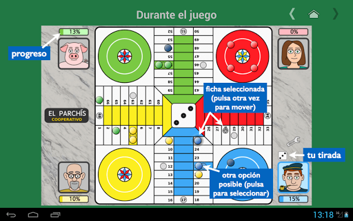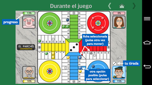 In addition, 1-4 humans can play parchís in the same device. Choose the avatars and colors that you prefer and enjoy the game!