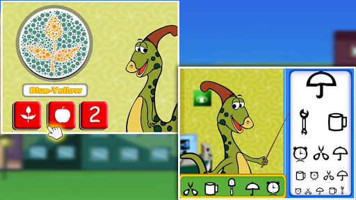 Play with Dr. Dino, be a doctor! Kids can do: Fill teeth, Check Vision & Colorblind, Injection, X-rays and joint broken bones, Check-up, and etc.