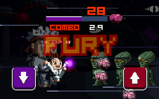 Each control button is connected to a corresponding lane. Making a mistake results in a loss of a life. Rapidly defeating enemies gives you the ability to achieve a temporary fury mode where the player becomes untouchable. Every third fury mode initiation gives the player a bonus life.