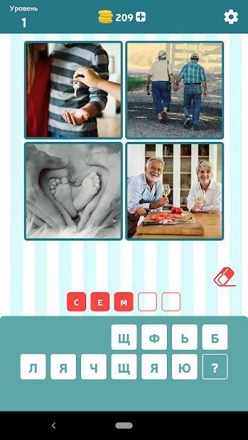 Игра "4 картинки 1 слово" погрузит тебя в мир загадок и головоломок.Каждый уровень - набор из четырех картинок, которые объединяет одно слово. Что за слово? Может быть это страна? Или какое-то значимое событие? А может быть цвет? Все это тебе и предстоит выяснить. Изучай фото, ведь в них разгадка! А если же не удается найти решение, тебе будут доступны подсказки "Открыть букву", "Убрать лишнюю букву", либо же "Пропустить уровень". Также ты всегда можешь обратиться за помощью к друзьям, ведь в компании разгадывать головоломки куда увлекательнее!