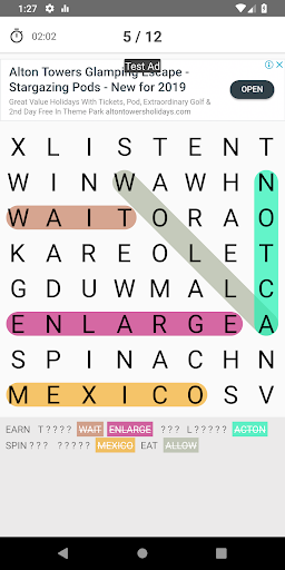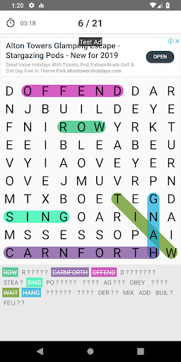 In this Word Search game for free, you will play from easy 5 x 5 games up to bigger challenges as you advance!
