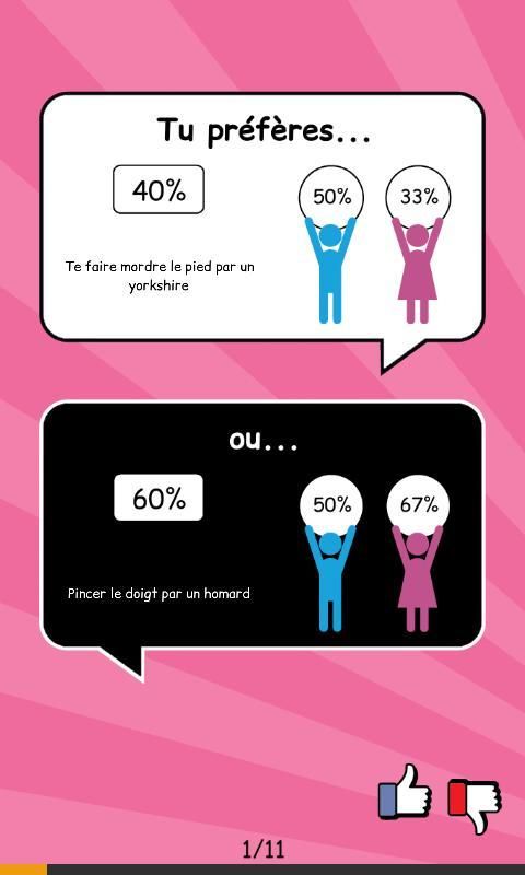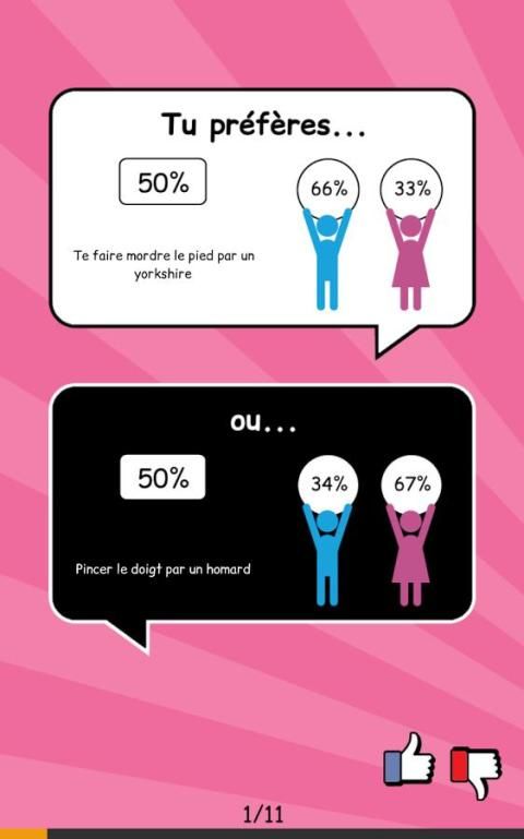 By clicking on the answer of your choice Compare yourself to other players to see if you think like them .N'hésite limit limit not to add your own "You prefer" to other players.