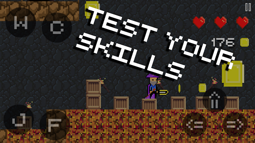 Help him remember his abilities and escape from the mine. Face your enemies and collect coins to survive the challenges you will find.