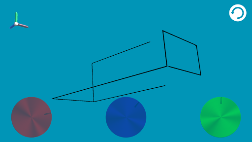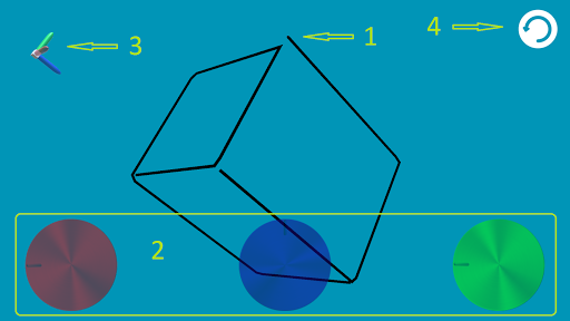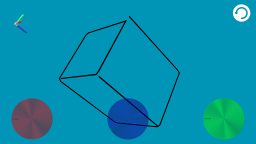 3. Ejes: Indican la posición desde la que observamos el dibujo. Al comienzo del juego estamos situados frente al plano X (horizontal) e Y (vertical). La posición de las flechas de los ejes indica hacia donde se dirige el Punto cuando giramos el mando correspondiente a la derecha. Al mover el punto de observación (mediantes gestos con uno o dos dedos como se explica más adelante) variará la posición de los ejes.