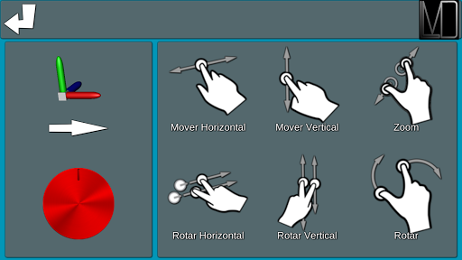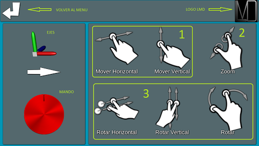 En la pantalla de información se pueden consultar los gestos que nos permiten observar el dibujo desde diferentes vistas (consulta las imágenes adjuntas):