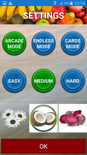 Several themes to play with: Flowers, Fruits and Vegetables.