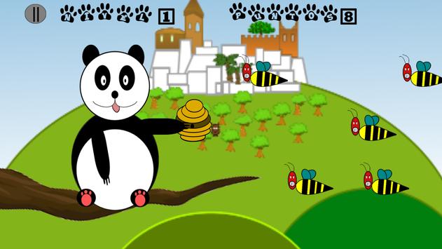 El panda está sentado en la rama de su árbol favorito, y con el panal tiene que coger todas las abejas posibles.