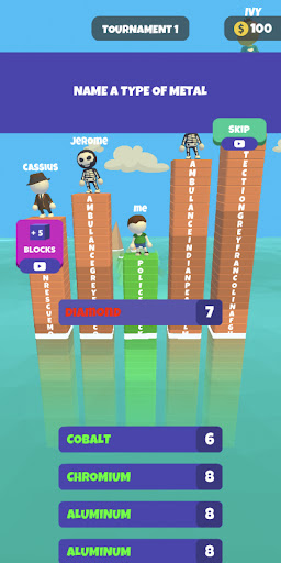 The longest answer wins! Answer each question with the longest answer you can think of to build your tower and escape the rising waters! As long as you can outlast the opponents, you wont get eaten!