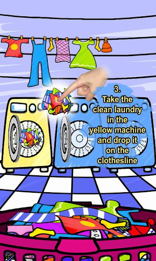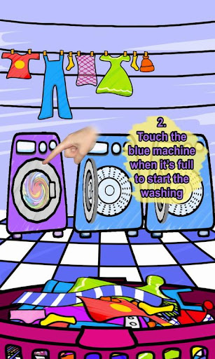 You must fill washing machines, start them and put the clean laundry on the clothesline.