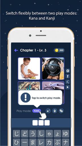 You can switch flexibly between 2 play modes: Kana and Kanji