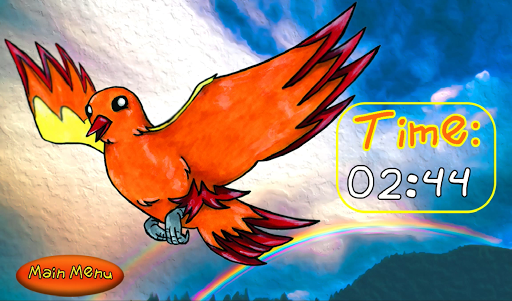 Fly over beautiful hand drawn landscapes! Dodge trees, other birds, and clouds! Try to finish with the best possible time! Collect clocks to briefly stop the time!