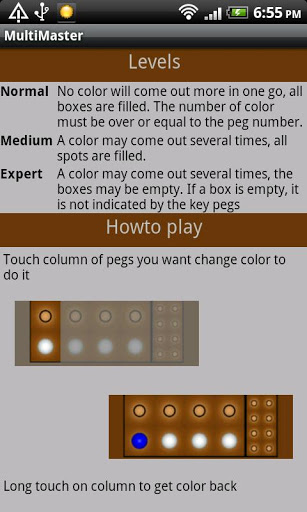 If you think it's too bad for you, you must know that all the 3 levels can be personalized with number of peg, number of colors and number of tries.