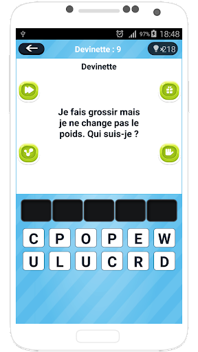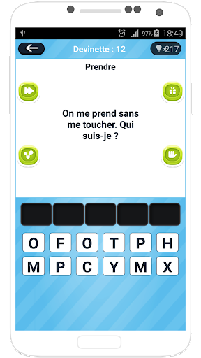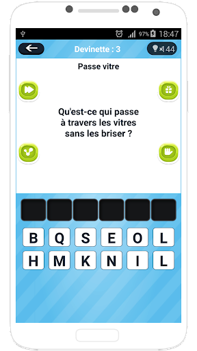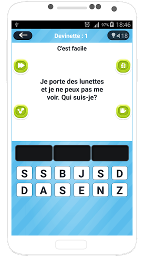 Devinette en Français est un jeu de mots ludique et éducatif à la fois qui propose une série des énigmes qui vont vous mener vers des niveaux de plus en plus difficiles.