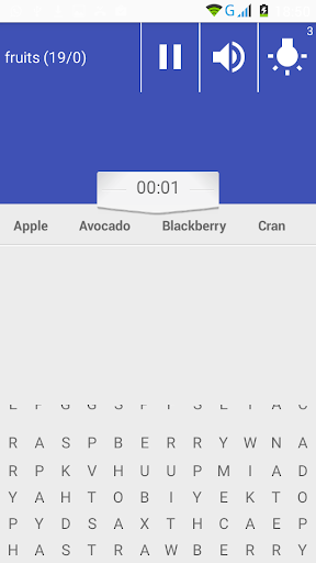 word search game based on fruits