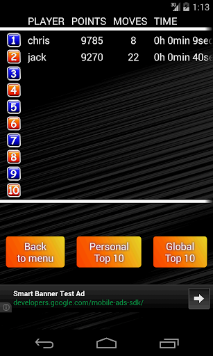 - Statistics includes: points, number of moves, time
