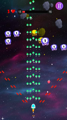⭐ Touch screen to move and kills enemies. The spaceship auto shoot.