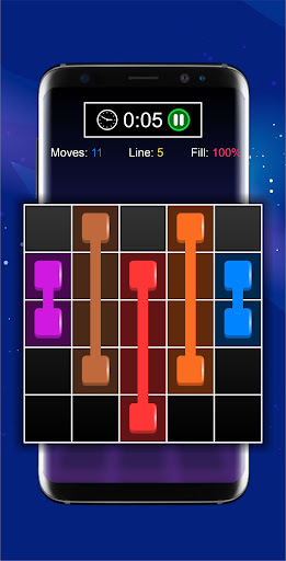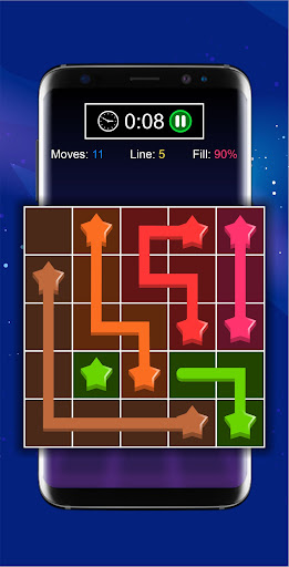 Flow Connect is a puzzle game where the objective is to match pairs of colored dots with a continuous line without crossing or overlapping other lines. It consists of a grid of dots, and the player must flow line to connect each pair of dots of the same color. The lines must cover every empty cell on the grid, and no two lines can intersect or overlap.