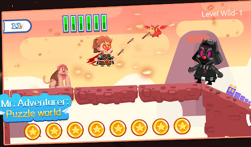 Play as adventurer who has to overcome obstacles and defeat enemies to find his gold stars.