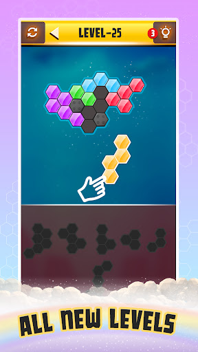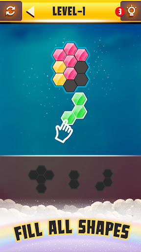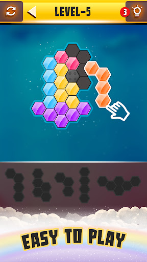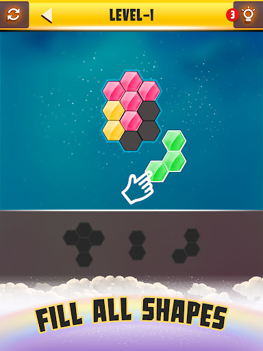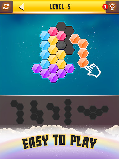 It’s simple and addictive gameplay that challenges your brain and helps to improve logic across different age groups. This game is suitable for all age groups from kids to old age. This is the best Hexa puzzle free game to play offline. Once you start playing, you will not stop. It’s not only a jigsaw block puzzle solving game, but also an educational learning app. You only need to play this hexagonal calmly, unite bricks. Drag and drop Hexa blocks to the board and get amazing bonus points by making combos of hex blocks.